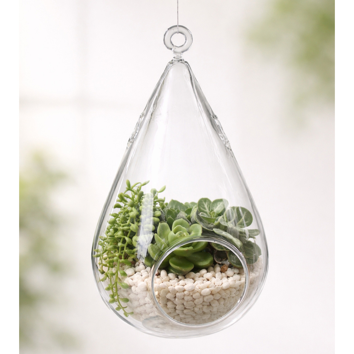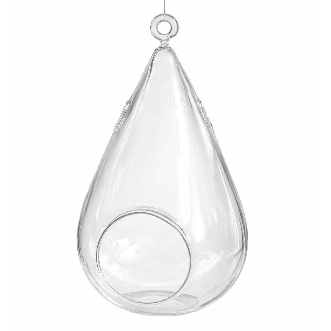 Raindrop Hanging Glass Vase 6″dia x 9.5″H Opening: 3.25″ x 3.5″ 1 pc/inner box 6 pc/case